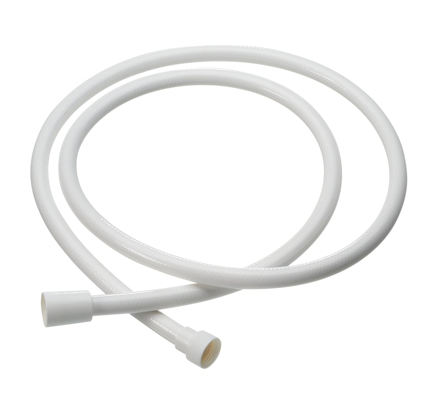 Suihkuletku, muovi, 1500 mm, valkoinen. Tuotteen mitat 20 x 20 x 4 cm.
