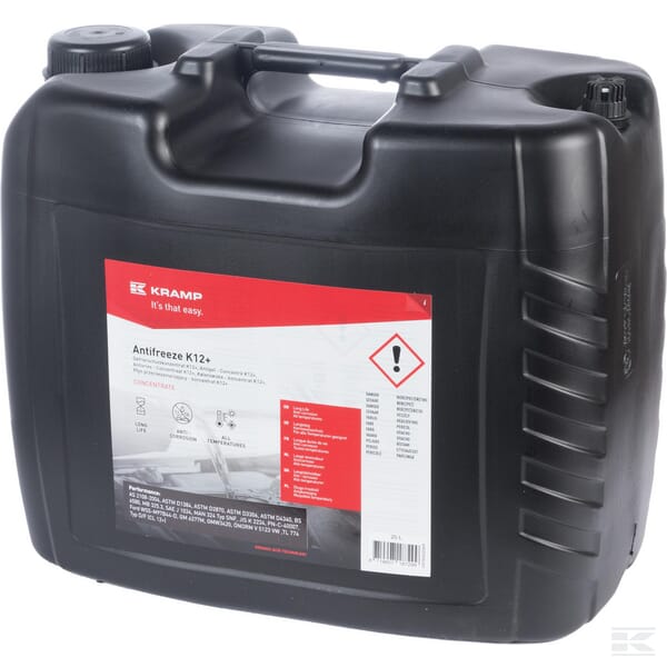 Kramp K12+ on liilan värinen silikonivapaa pakkasneste. Suojaa ruostumiselta ja estää vaahdon muodostumisen jäähdytysjärjestelmässä. Kramp K12+ pakkasneste ylittää monien valmistajien ja kansainvälisten standardien vaatimukset. Ei vahingoita jäähdytysjärjestelmän tiivisteitä tai letkuja. Pakkasnesteen vaihtoväli jopa 8 vuotta.