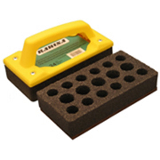 Laadukas piikarbidista valmistettu kahvallinen käsihiomakivi betoni- ja tasoitepintojen mm. betonipurseiden ja kuivuneiden liimajäämien hiontaan. Karkeus on 24, eli keskikarkea.