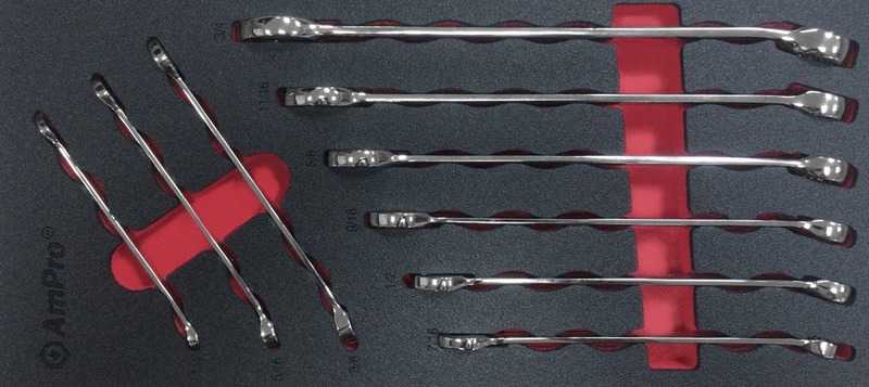-materiaali kromi-vanadium -terästä -sarja sisältää: --kiintolenkkiavaimet 1/4", 5/16", 3/8", 7/16", 1/2", 9/16", 5/8", 11/16", 3/4" -foam säilytysalusta, koko 408 x 188 mm -IP-ripustinpakkaus... Lue lisää
