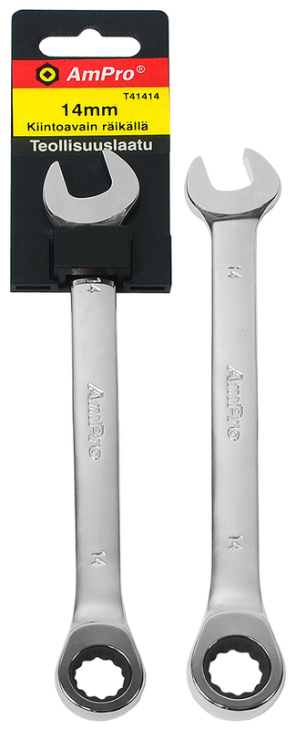 -materiaali korkealuokkaista kromi-vanadium -terästä, kiillotettu kromiviimeistely -silmukkapäässä 72-hampainen räikkä sekä 12-PT Convex Drive -profiili -pituus 180 mm -IP-ripustinkortti... Lue lisää