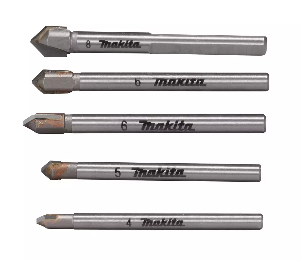 Laadukas 5-osainen lasiporanteräsarja lasien ja laattojen poraamiseen, ei sovellu kuivapuristelaatalle ja karkaistulle lasille. Kovametallikärjillä varustettujen terien halkaisijat 4-8 mm.