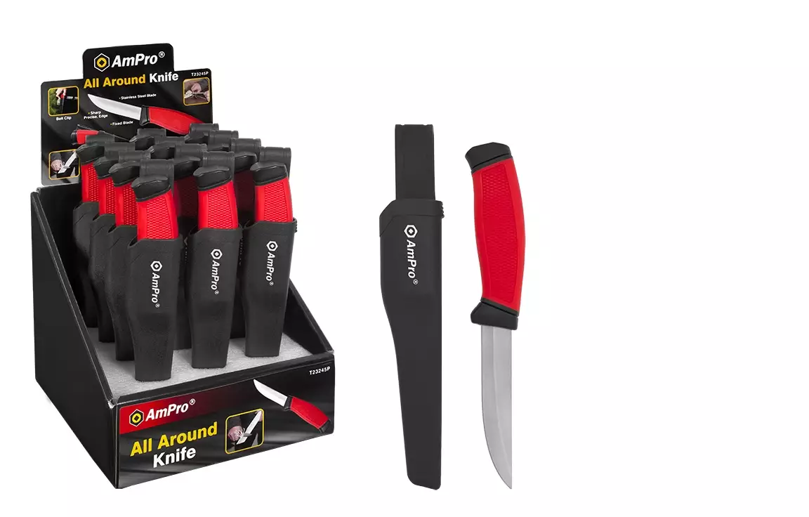 -terän materiaali ruostumatonta terästä -pitävä grip kahva -terän pituus 100 mm -puukon kokonaispituus 210 mm -muovituppi, jossa vyöpidike/ripustin