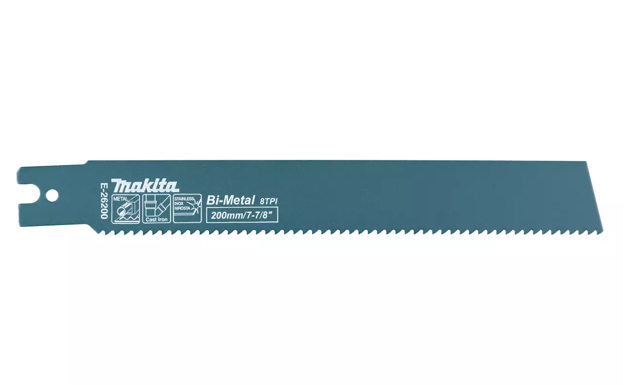 BiM (Bi-Metal) -puukkosahanterä metallin, valuraudan ja RST:n katkaisuun. Terän kokonaispituus on 200 mm ja työskentelypituus 172 mm. Paksuus on 1,6 mm ja 8 TPI. Pakkauksessa on 5 kpl teriä. Poikkeavan kiinnityksen vuoksi terä on tarkoitettu käytettäväksi erityisesti Makita JR003G -ketjulisälaitteella varustetussa puukkosahassa.