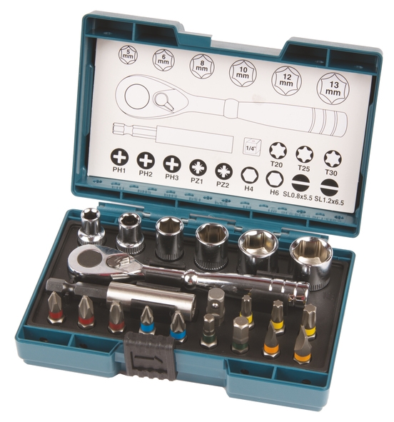 Ruuvikärkisarja magneettipitimellä ja 1/4" räikällä. PH1/2/3, PZ1/2, SL0.8x5.5,SL1.2x6.5, T20/25/30, KUUSIO 4/6 25mm. Hylsyt H5,H6,H8,H10,H12,H13. (ME 5kpl/Display)