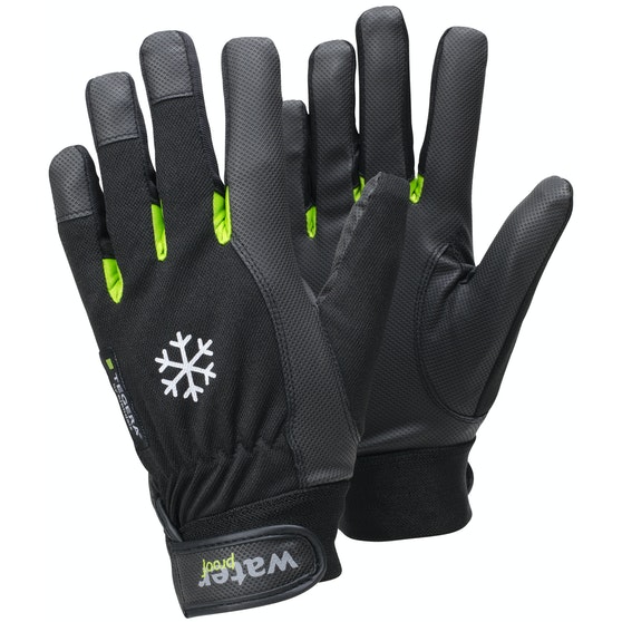 Lämpimät ja vedenpitävät Tegera-talvikäsineet, joissa on fleecevuori ja 0,7 millimetriä paksu keinonahkainen kämmenosa.