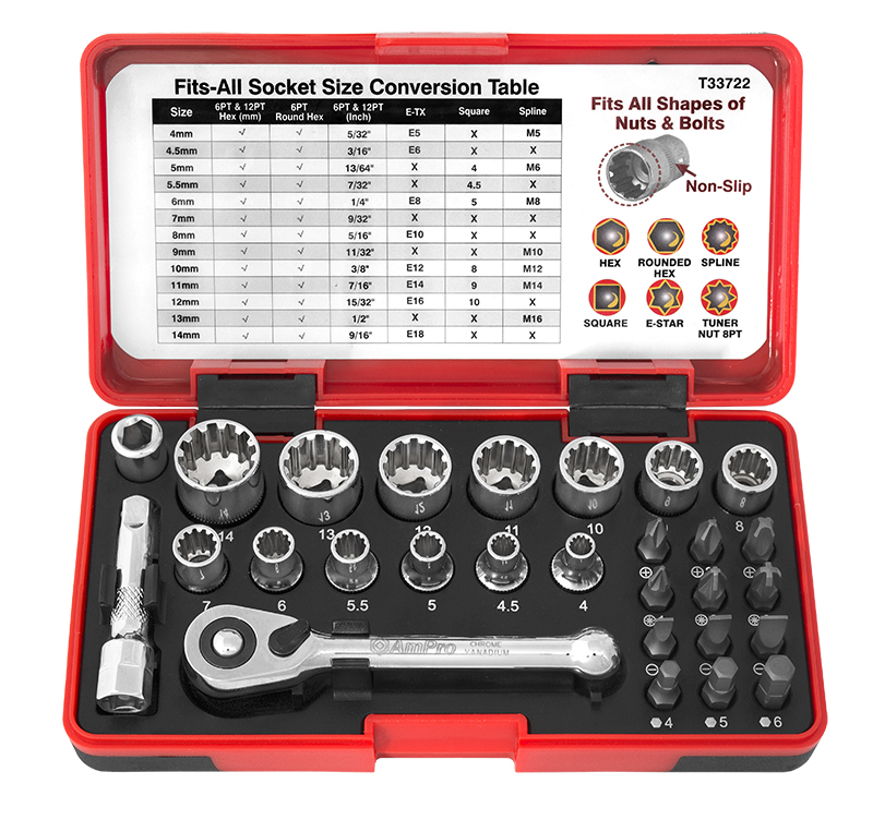 Työkalusarja AmPro Fits-All 1/4" 28-os.