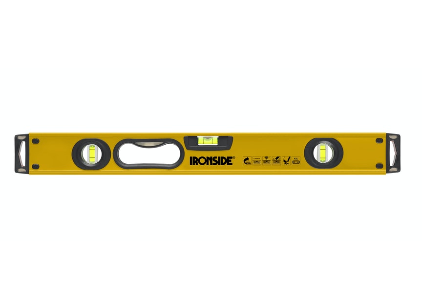 Vankka, keltaiseksi maalattu vaaka on varustettu erikoisvahvalla alumiiniprofiililla. Vaa’an ylä- ja alapinta on hiottu (66,8 x 30 mm). Vaa’assa on kolme iskusuojattua libelliä: 2 pystylibelliä, jotka libellipeilin ansiosta ovat helposti luettavissa ahtaissa tiloissa ja 1 vaakalibelli.